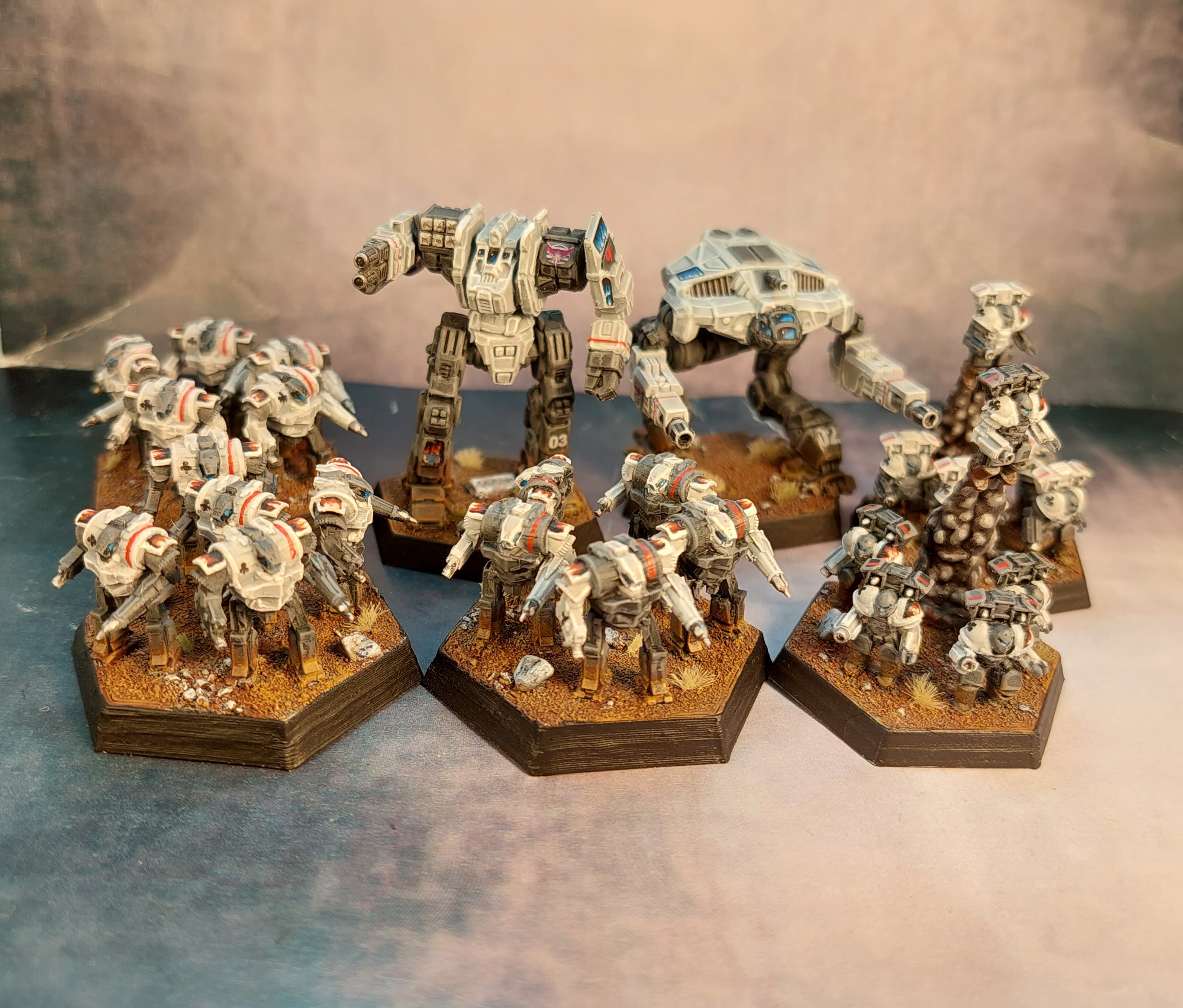 Außer Gebäude hab ich in der letzten Zeit nicht viel gemacht, aber wenigstens sind jetzt nochmal 6 Mechs für meine Gray Death Legion fertig geworden. Somit hab ich 2 bemalte Kompanien vollzählig.