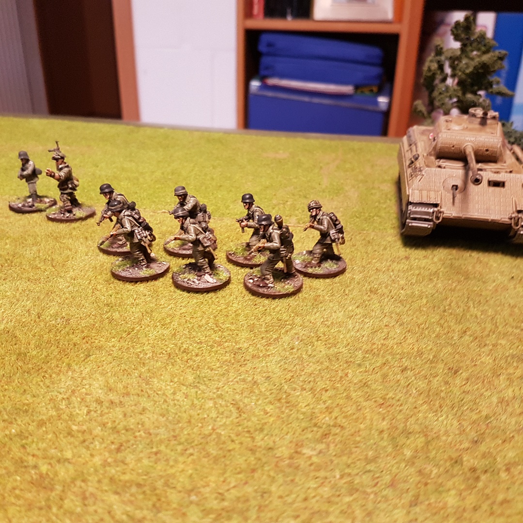 Der Sherman und der Panzer IV lieferten sich danach ein unwirksames Feuerduell, während um sie herum die Infantrie versuchte sich einen Vorteil zu verschaffen.