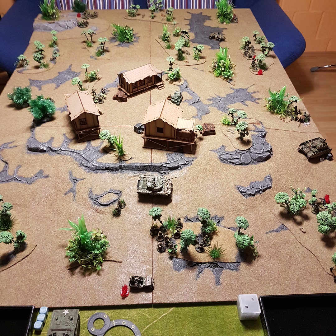 Der Sherman und der Panzer IV lieferten sich danach ein unwirksames Feuerduell, während um sie herum die Infantrie versuchte sich einen Vorteil zu verschaffen.