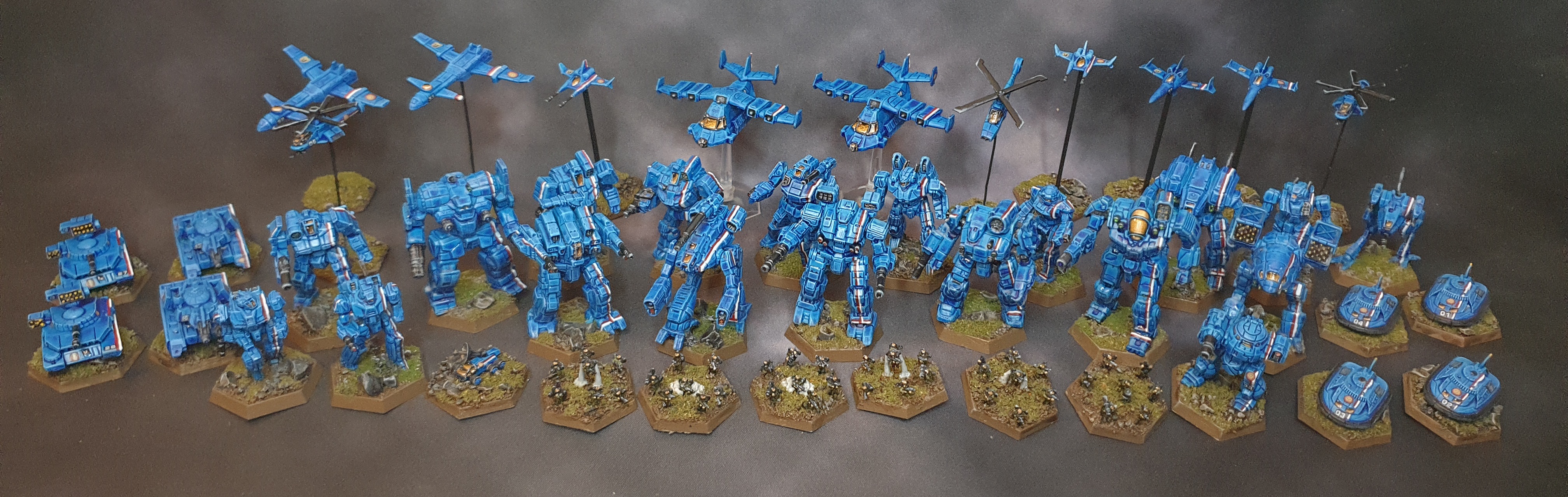 Das Battletech Davion Projekt ist damit auch erstmal abgeschlossen und wird nur noch sporadisch fortgesetzt. Hier mal das gesamte Projekt was ich jetzt für das P250 in der Tabletopwelt bemalt habe...