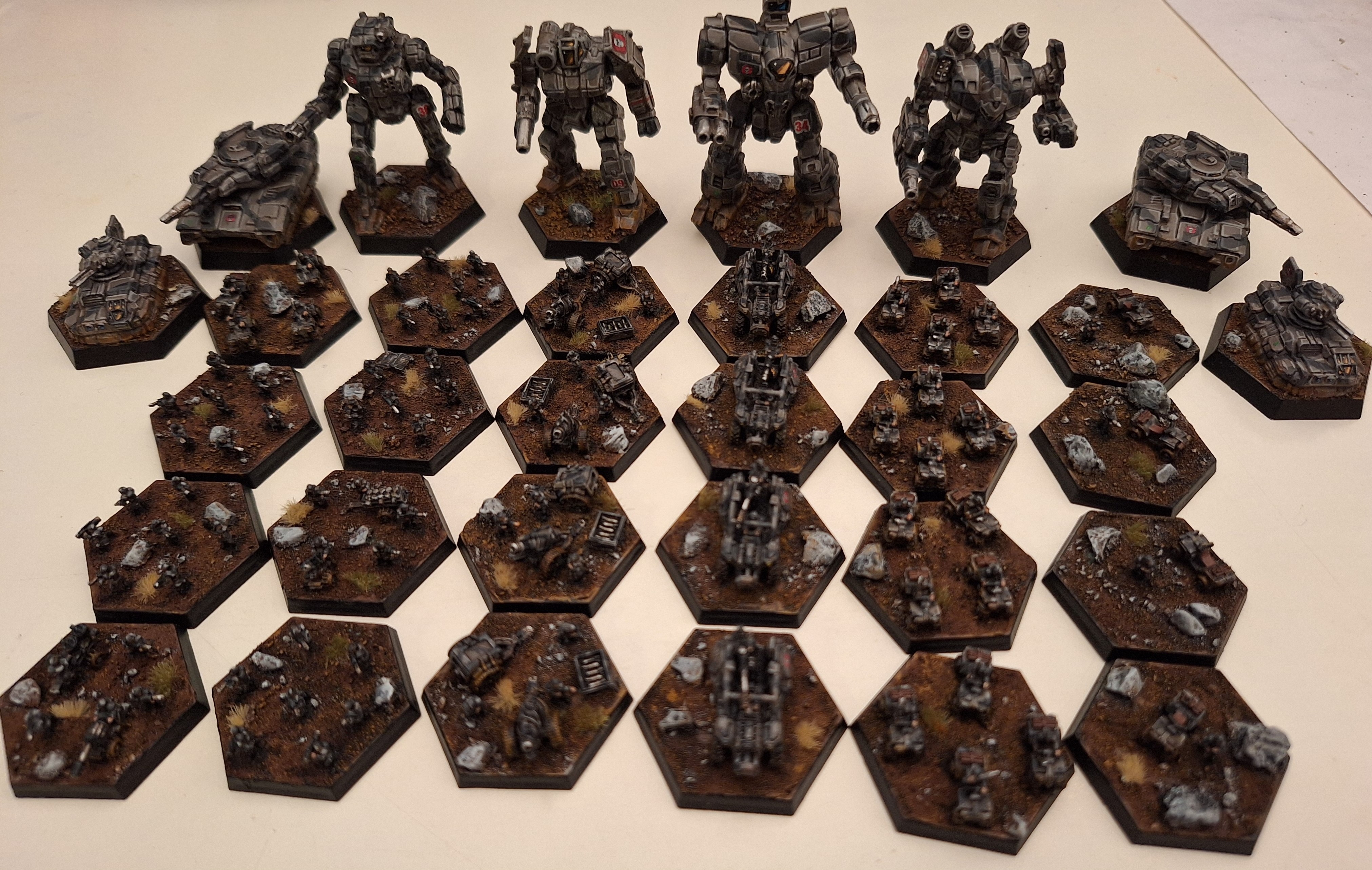 4 Mechs, 4 Fahrzeuge und 24x Infanterie
