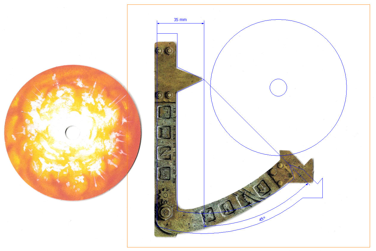 Nachdem ich gestern die Pappschablonen von Gorkamorka gesehen habe, habe ich eine Vorlage für die Fahrzeugdrehschablone und die 4'' Explosionsschablone gemacht, die man lasern lassen kann.