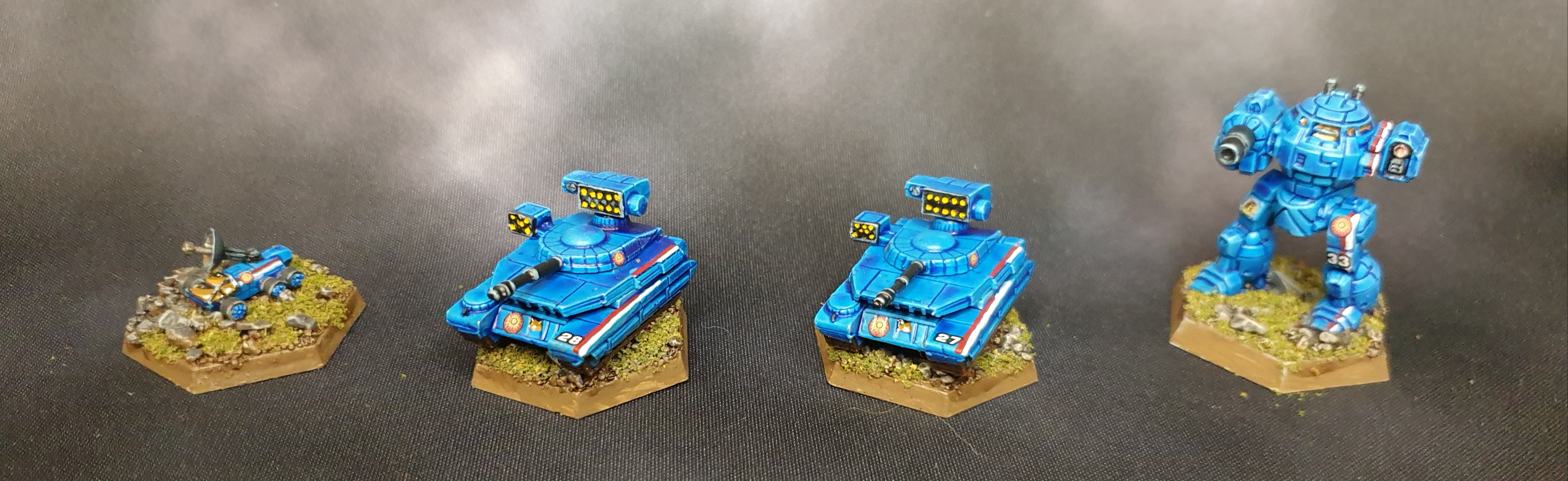 Das Battletech Davion Projekt ist damit auch erstmal abgeschlossen und wird nur noch sporadisch fortgesetzt. Hier mal das gesamte Projekt was ich jetzt für das P250 in der Tabletopwelt bemalt habe...