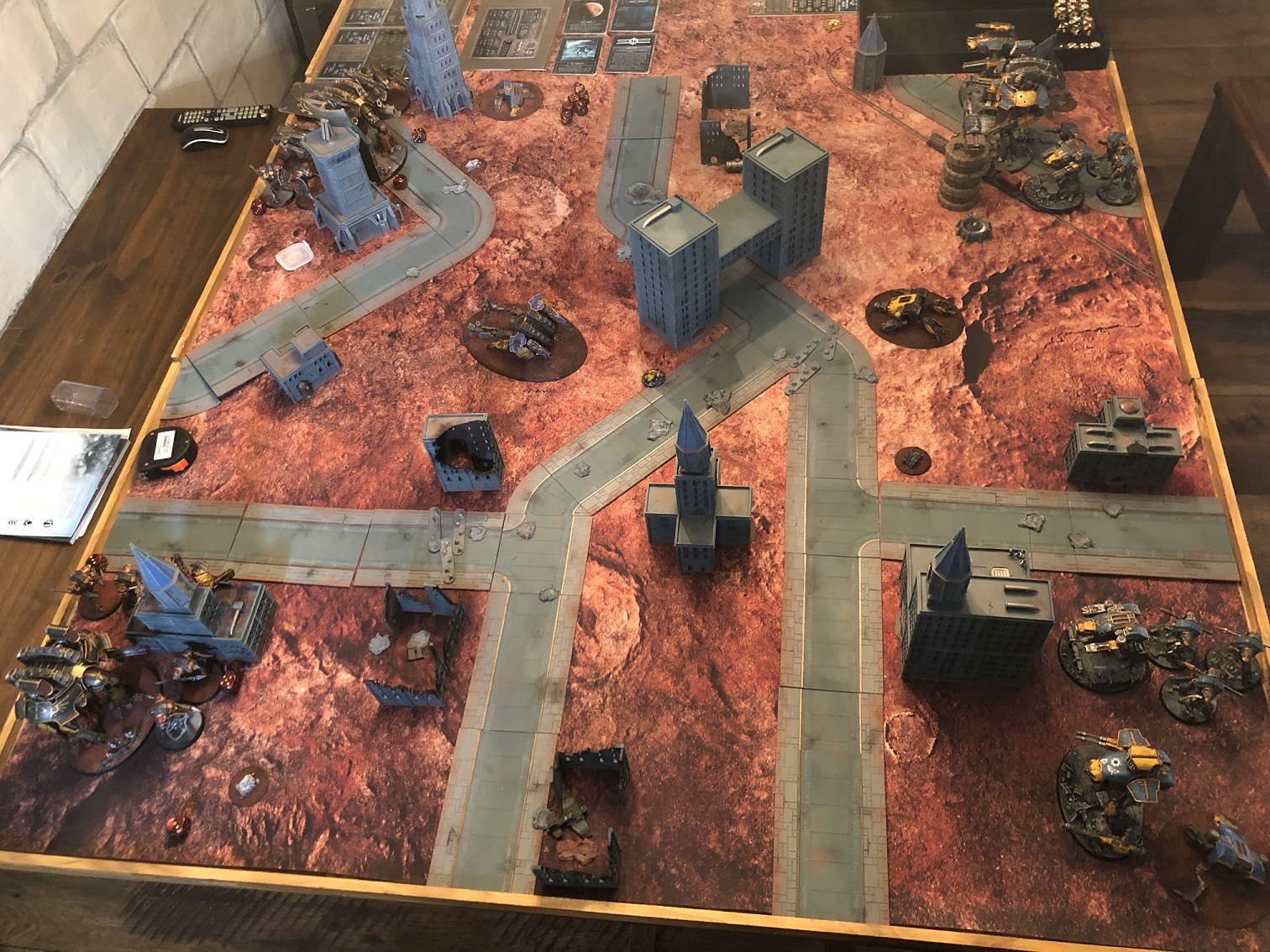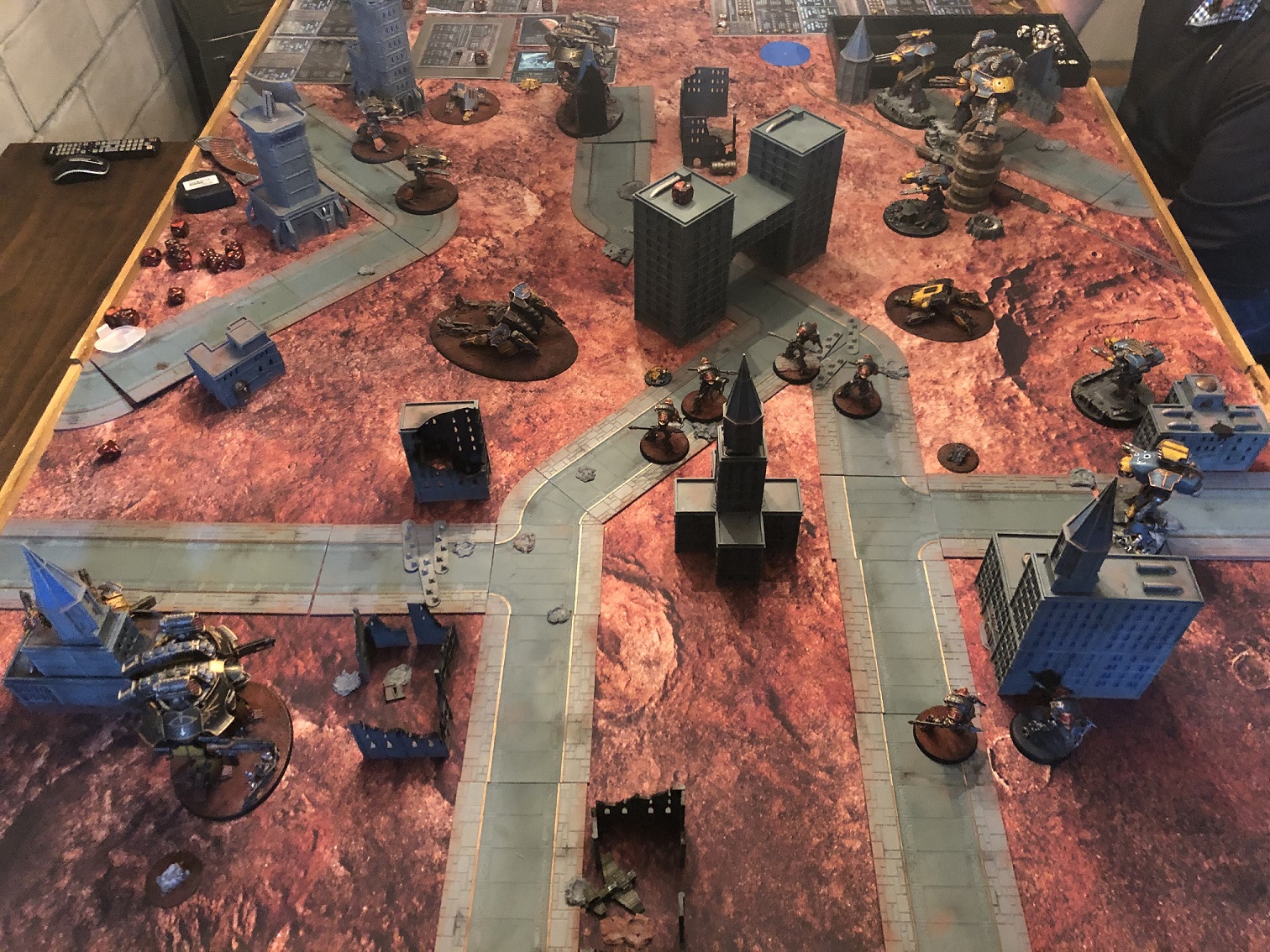 Beide Streitkräfte versuchten einen in der Mitte des Spielfeldes wichtigen Titanenkopf eines Legio Astorum Warlords zu bergen